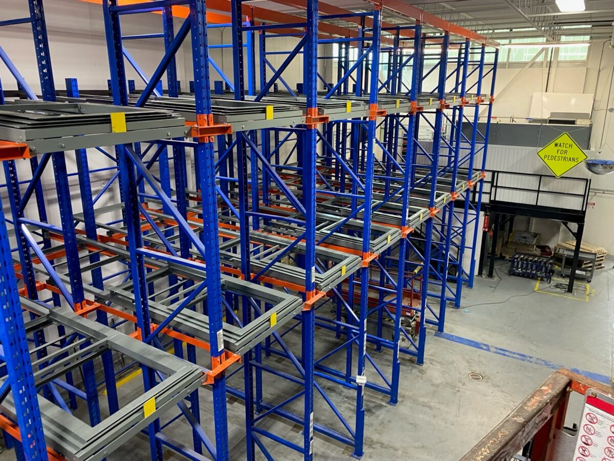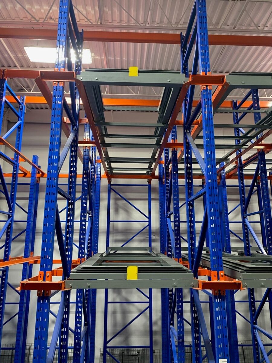 Because the original rack was relatively new and in excellent condition, a drive-in to pushback conversion was possible. 3D designed a hybrid system that combined: